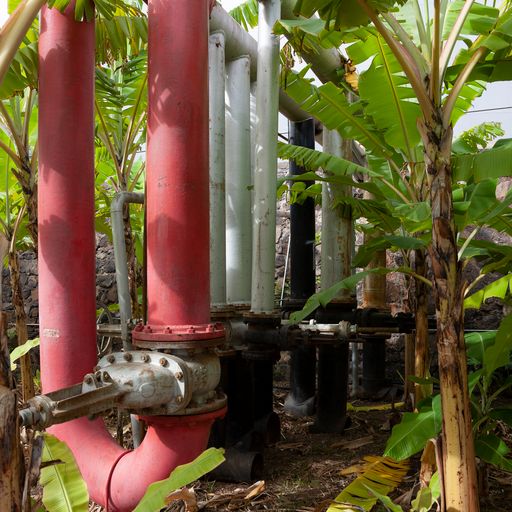 The perimeter of El Tanque has been covered with banana trees as a way of remembering the agricultural activity that existed in this area before the CEPSA refinery was located here in the 1930s. As time passes by the exuberant subtropical vegetation colonizes the industrial relic, framing its fascinating presence while restoring the memory of the agricultural past to build a sense of cultural continuity and belonging.