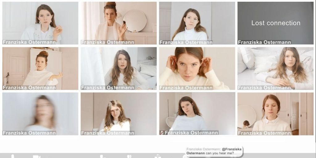 In Franziska Ostermann’s Can you hear me?, the artist stages a virtual Zoom call between different versions of herself. The fragmented conversations, filled with questions like Can you hear me?, highlight the challenges of authentic connection in the digital space. The piece underscores the alienation and separation caused by the very technology that enables the meeting, as the selves attempt to connect but never quite align.