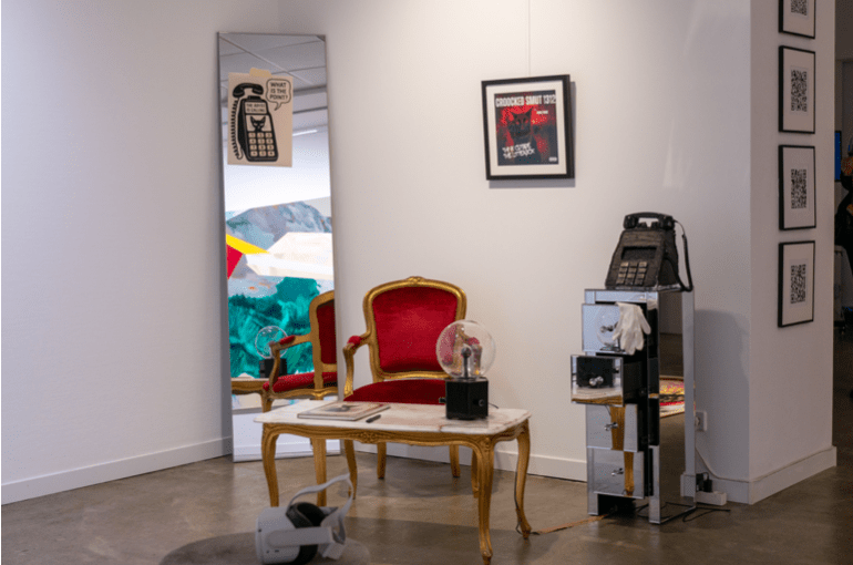 Moving toward the left-hand side, the exhibition brings into view what until then had operated as a subterranean layer, the digital emerging as a space in its own right, experienced through the curators’ careful scrutiny. Here, NFTs from Kika Nicolela’s collection assume a central role. Navigation through this territory remains cautious, and rightly so. The infrastructures underpinning the crypto universe are neither neutral nor free from environmental, economic, or political contradictions. Yet within this context, NFTs do not present themselves as redemptive nor as absolute villains. They emerge as symptoms of our times, spectral spaces in which images, affects, and experiences exist without stable physical anchoring.