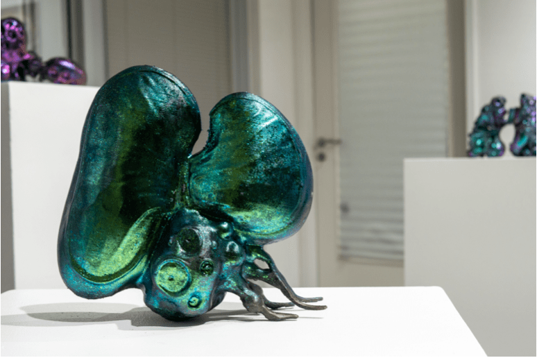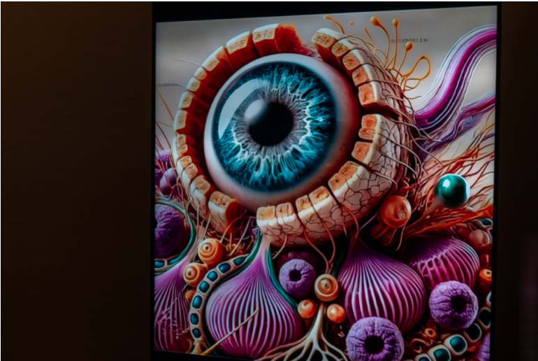This exploration materialises three-dimensionally in the series Update Us (2025), realised in 3D printing. Glandula Empathiae, Memoria Triplex, and Glandula Dissolutrix designate fictional organs, as if the human body needed to be redesigned to survive a world saturated with informational flows. The AI eye accompanying the visitor from entry to exit functions as an amplified metaphor, an organ without a fixed body, observing, learning, and returning images.