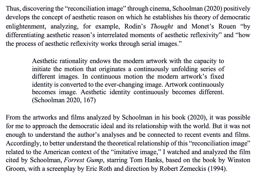 Thus, discovering the “reconciliation image” through cinema, Schoolman (2020) positively develops the concept…