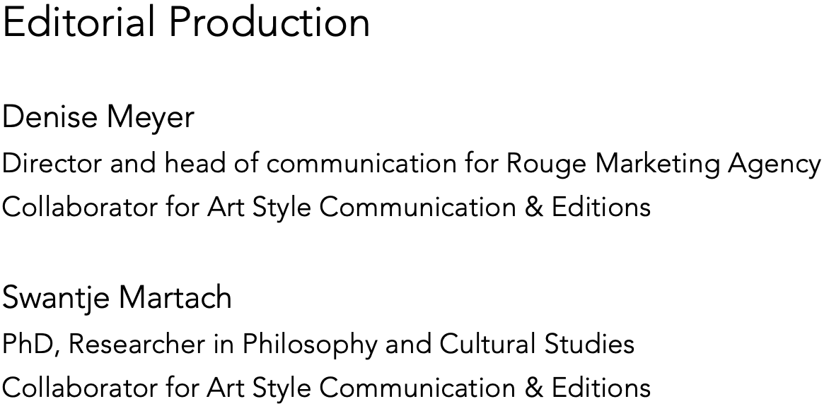 The editors of Art Style Magazine cannot be held responsible for errors or any consequences arising from the use of information in essays and articles published on the Art Style Magazine’s website and editions. Authors agree to the terms and conditions and assure that their submissions are free of third parties’ rights. The views and opinions expressed in the essays and articles are those of the author and do not reflect the views of Art Style Magazine. The authors of Art Style Magazine’s essays and articles are responsible for its content. The Art Style Magazine‘s website provides links to third-party websites. However, the magazine is not responsible for the contents of those linked sites or any link contained in the linked site content of external Internet sites.